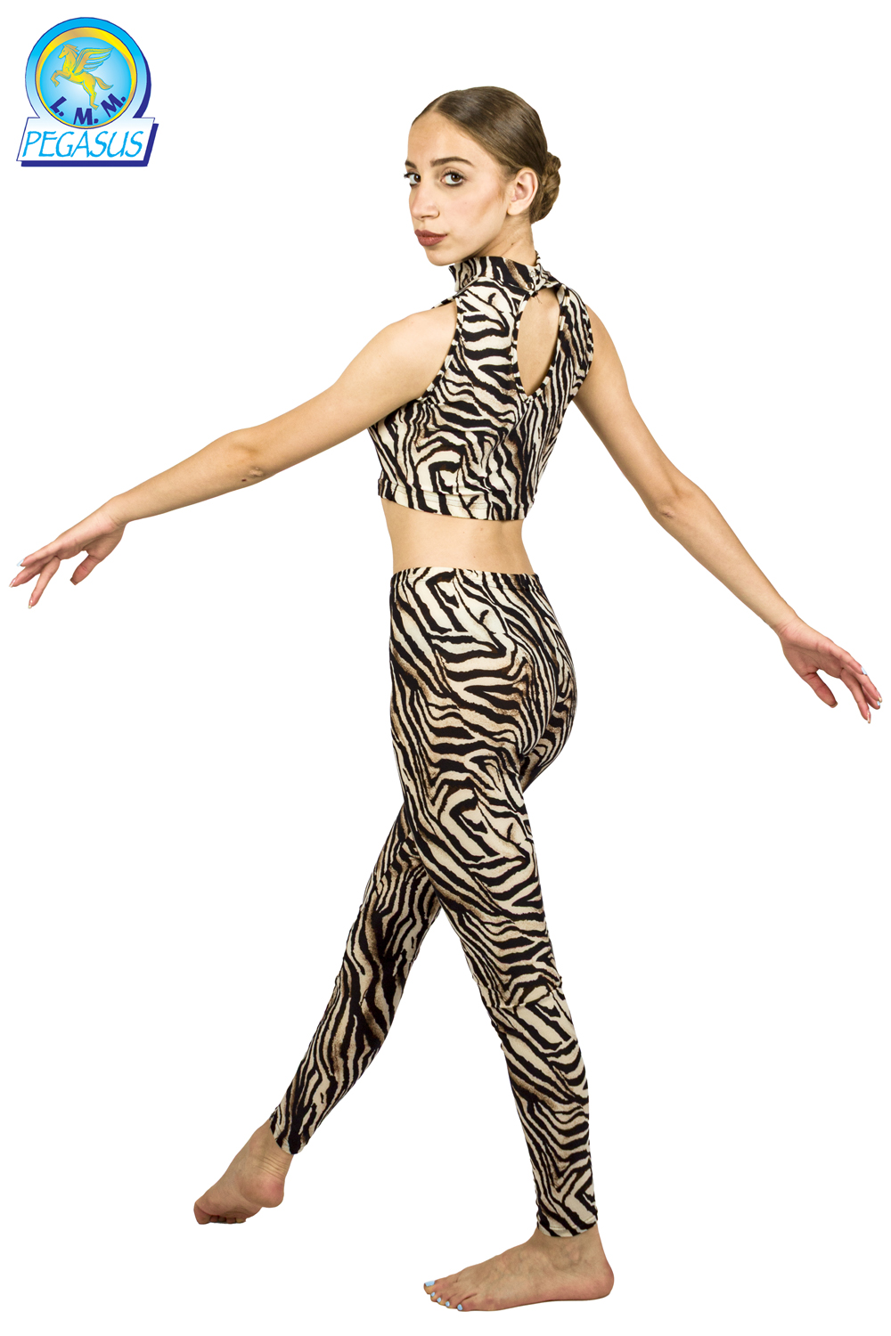 Scopri il look grintoso e dinamico del costume leggings zebrato, pensato per performance di danza, spettacoli o eventi tematici. Il design animalier in stile zebra dona un tocco audace e originale, ideale per chi vuole distinguersi sul palco.