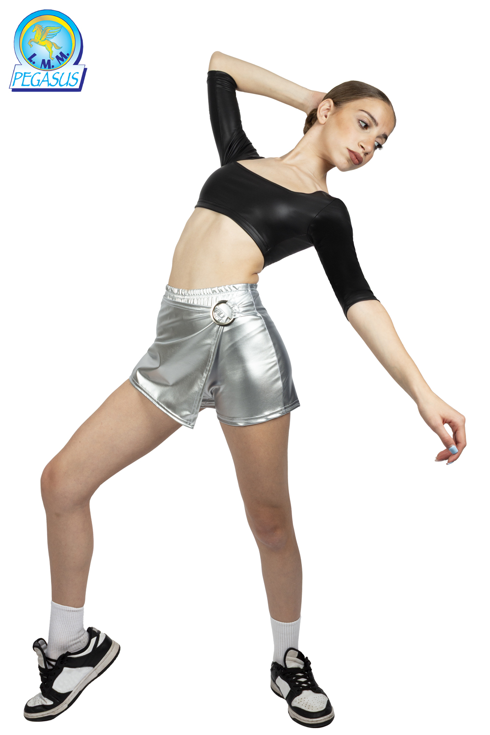 Dinamico ed elegante, questo pantaloncino da danza con effetto laccato lucido dona brillantezza e stile al movimento. Il taglio a portafoglio offre un'ottima vestibilità e valorizza la linea delle gambe, rendendolo perfetto per esibizioni, prove e coreografie contemporanee.